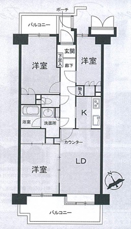 三口コンロ システムキッチン 独立洗面台 バス専用 バス・トイレ別 その他ガス 公営水道 排水下水 バルコニー