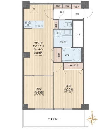 LDK10畳1室 洋室4.5畳1室 洋室5.5畳1室