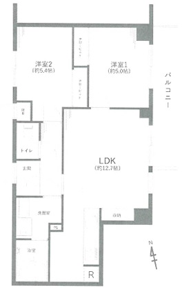 LDK12.7畳 洋室5畳 洋室5.4畳