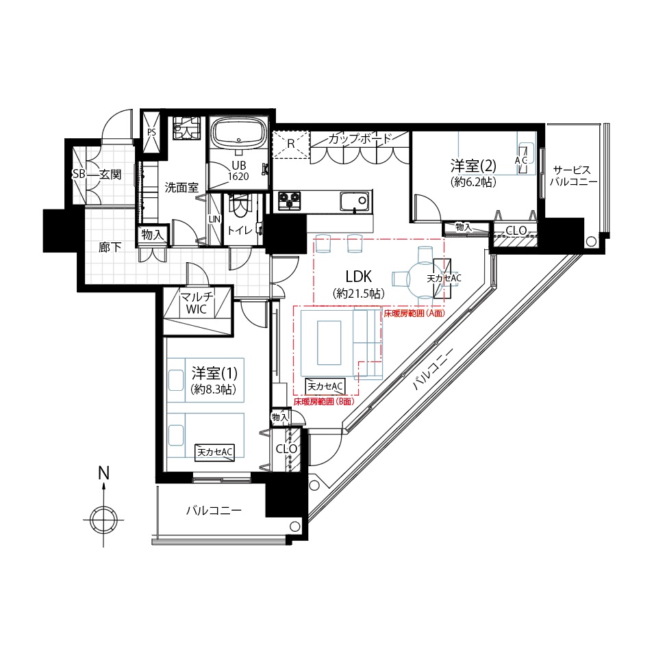 LDK21.5畳 洋室8.3畳 洋室6.2畳