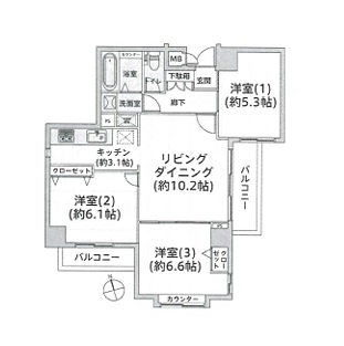 LDK13.3畳1室 洋室5.3畳1室 洋室6.1畳1室 洋室6.6畳1室