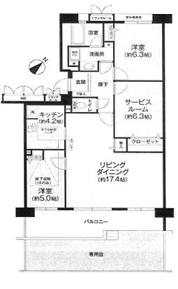 LDK21.6畳1室 洋室5畳1室 洋室6.3畳1室 S6.3畳1室