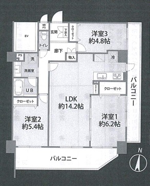 LDK14.2畳1室 洋室6.2畳1室 洋室5.4畳1室 洋室4.8畳1室