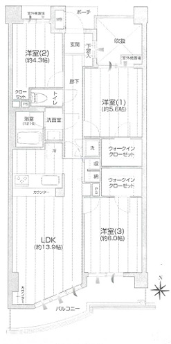 LDK13.9畳1室 洋室5.6畳1室 洋室4.3畳1室 洋室6畳1室