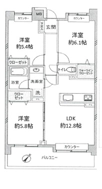 LDK12.8畳 洋室5.8畳 洋室6.1畳