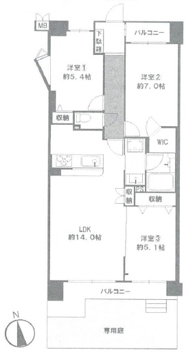 LDK14畳 洋室5.4畳 洋室7畳 洋室5.1畳