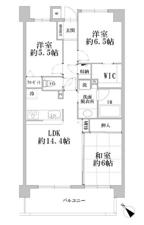 LDK14.4畳 和室6畳 洋室5.5畳 洋室6.5畳