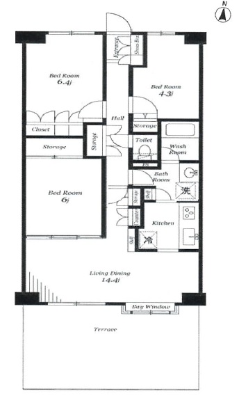 LDK14.4畳1室 洋室6畳1室 洋室6.4畳1室 洋室4.3畳1室