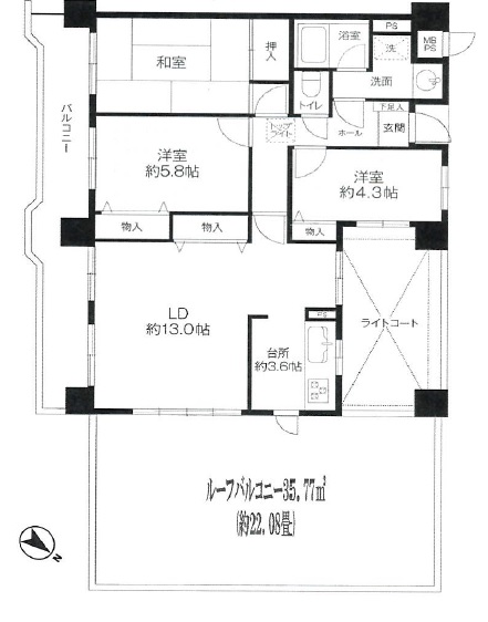 LDK16.6畳1室 洋室5.8畳1室 洋室4.3畳1室 和室6畳1室