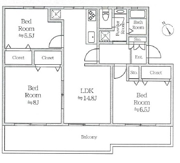 LDK14.8畳 洋室6.5畳 洋室8畳 洋室5.5畳
