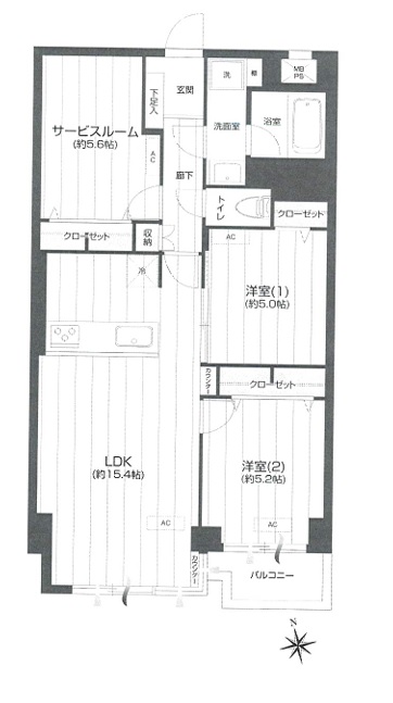 LDK15.4畳 洋室5畳 洋室5.2畳 S5.6畳