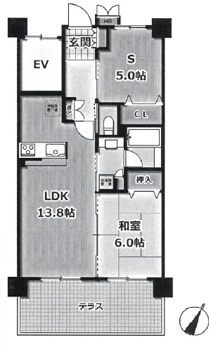 LDK13.8畳1室 和室6畳1室 S5畳1室