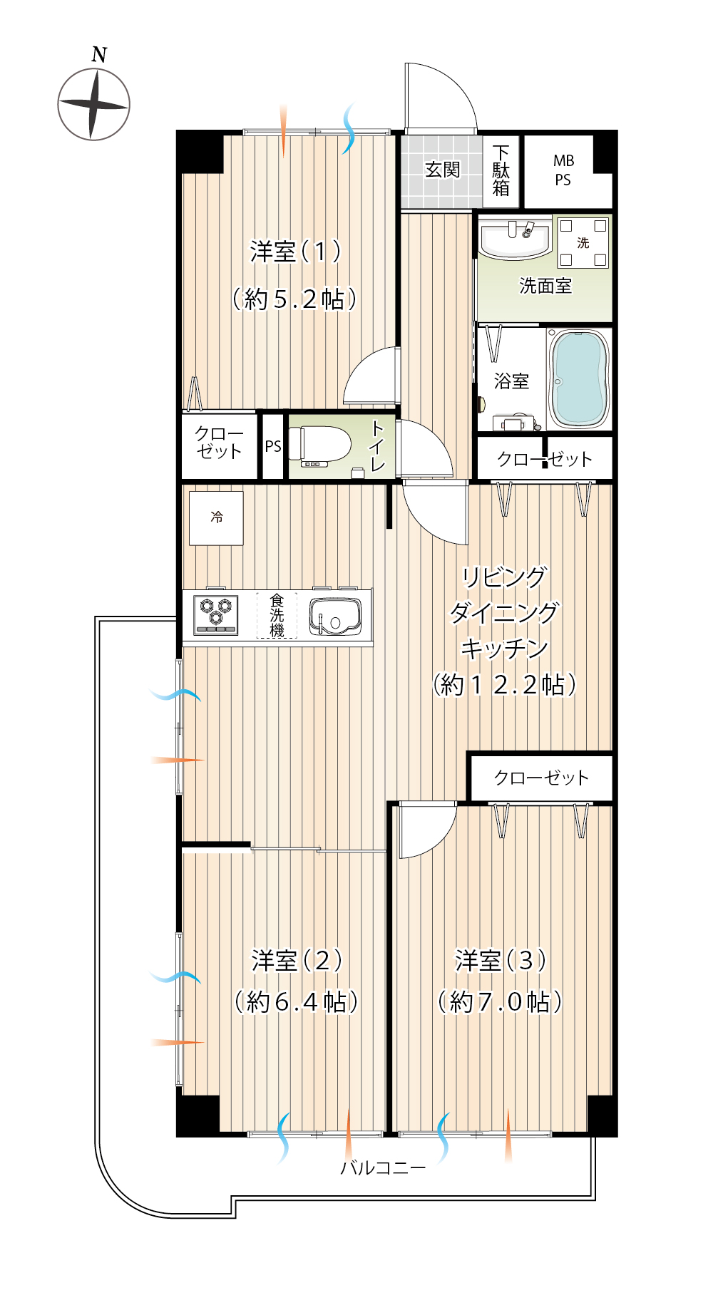 LDK12.2畳 洋室5.2畳 洋室6.4畳 洋室7畳