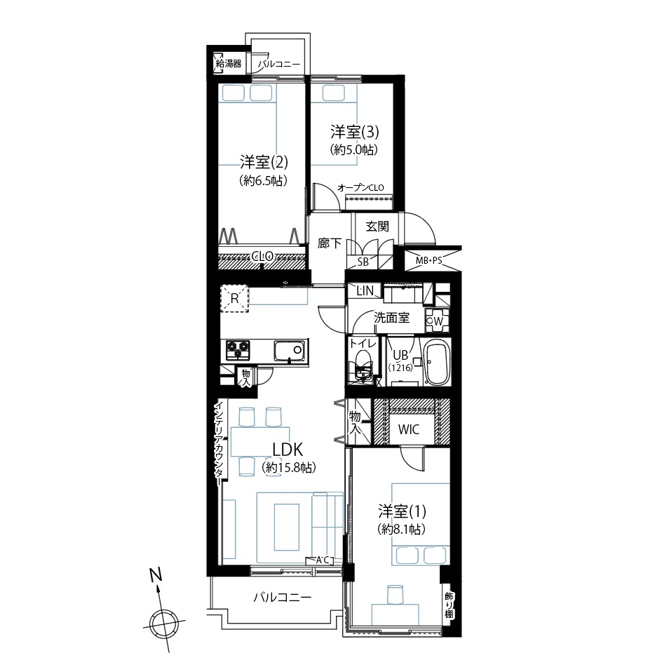 LDK15.8畳 洋室8.1畳 洋室6.5畳 洋室5畳