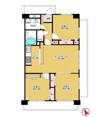 価格 2640万円 中古マンション 間取 3LDK
