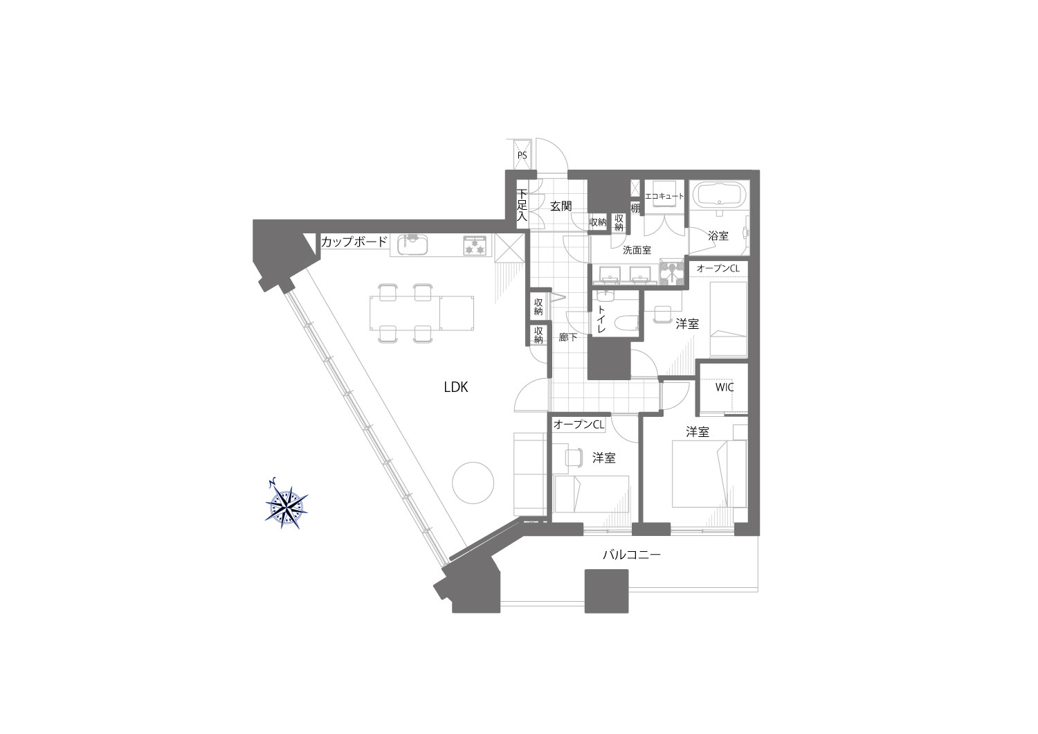 角部屋 三口コンロ システムキッチン 食器洗い乾燥機 給湯 追い焚き 独立洗面台 バス専用 浴室乾燥機 トイレ専用 バス・トイレ別 温水洗浄便座 エアコン 床暖房 W.INクローゼット 室内洗濯機置き場 公営水道 排水下水 エレベータ バルコニー フローリング キッズルーム