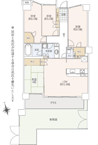 LDK13.8畳 和室6畳 洋室6.5畳 洋室5畳 洋室8.5畳