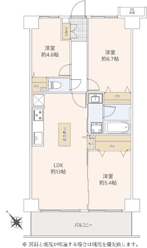 LDK13畳1室 洋室5.4畳1室 洋室6.7畳1室 洋室4.6畳1室