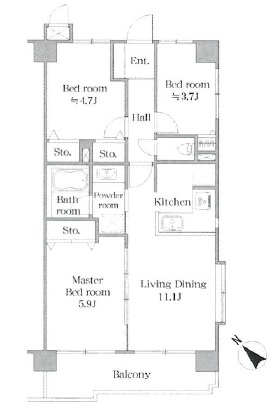 LDK11.1畳1室 洋室5.9畳1室 洋室4.7畳1室 洋室3.7畳1室