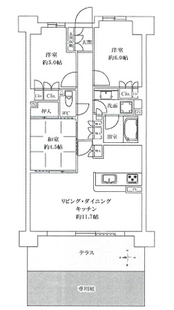 LDK11.7畳1室 和室4.5畳1室 洋室5畳1室 洋室6畳1室
