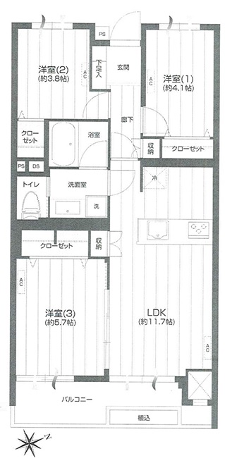 LDK11.7畳1室 洋室4.1畳1室 洋室3.8畳1室 洋室5.7畳1室