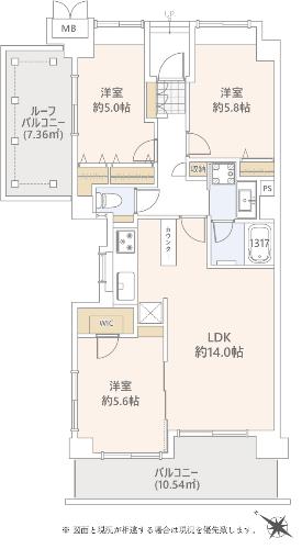 LDK14畳1室 洋室5.6畳1室 洋室5.8畳1室 洋室5畳1室