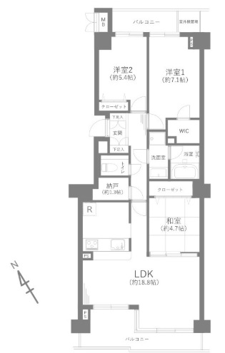 LDK18.8畳1室 和室4.7畳1室 洋室7.1畳1室 洋室5.4畳1室