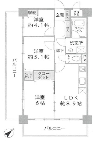 LDK8.9畳1室 洋室6畳1室 洋室5.1畳1室 洋室4.1畳1室